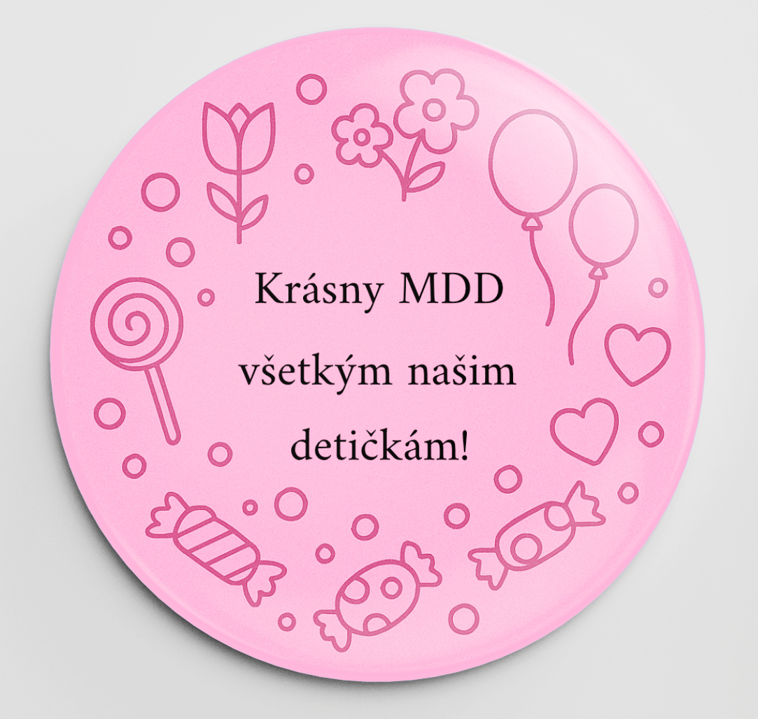 Možnosti prevedenia: ako odznak so špendlíkom, ak magnetka, ako zrkadielko, ako odznak s plastovou sponou alebo ako otvárač na fľaše (aj keď uznávame, že tento posledný druh sa pre deti moc nehodí :) ).