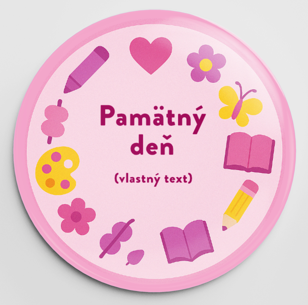 Na potlači je vymeniteľná farba pozadia, obsah textov, druhy písma a farby textov. Do odznakov je možné doplniť aj logo Vašej školy.