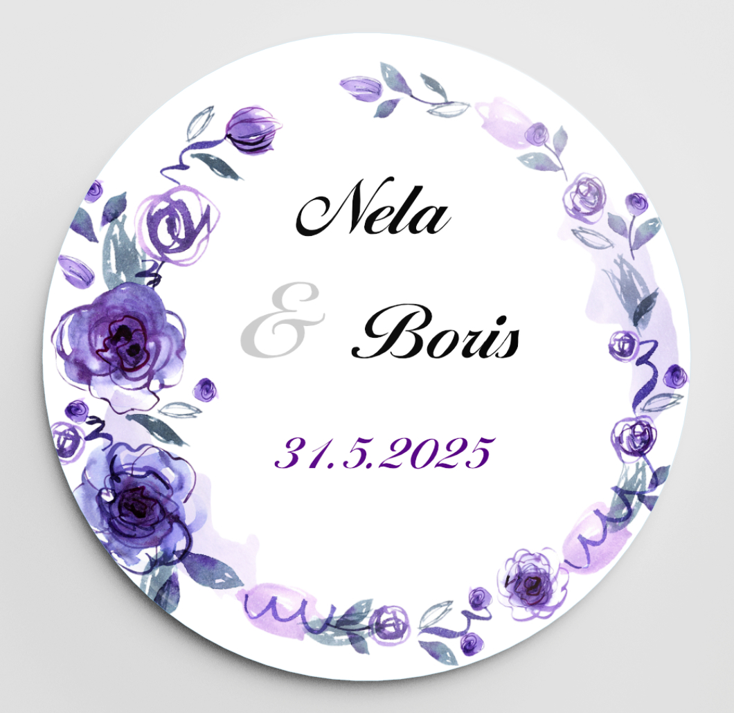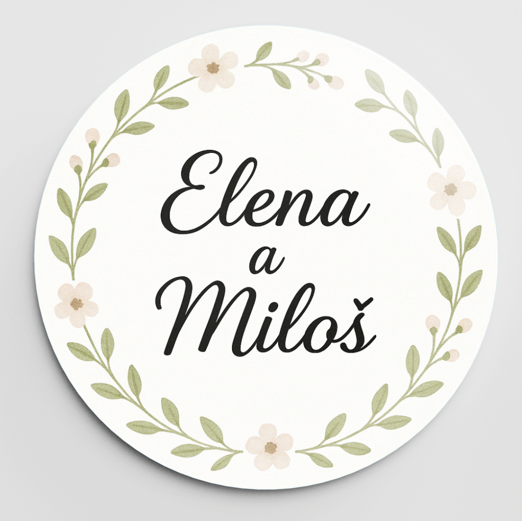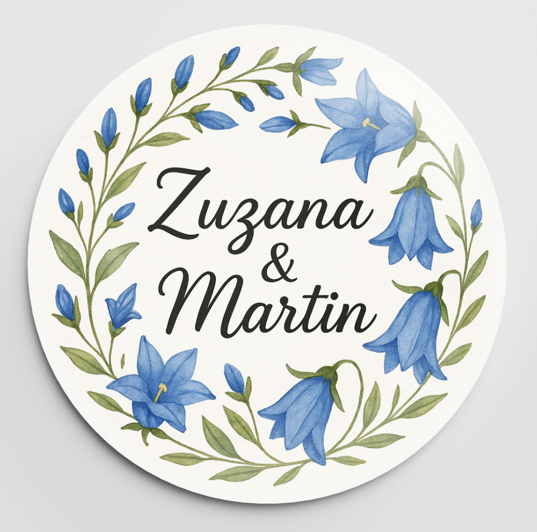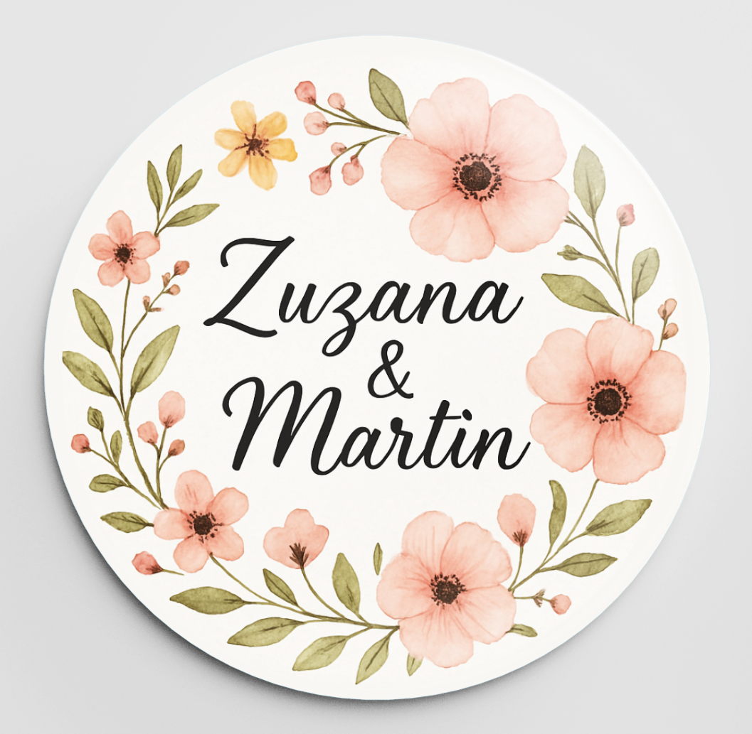 Potlač: buď Vaša vlastná, alebo niektorý z našich vzorov (samozrejme s vlastnými textami, farbou písma atď.). Viac šablón na svadobné odznaky nájdete aj na našom novom webe Odznaky.eu.